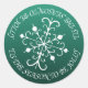Un arrière - plan vert décore ces autocollants Jolly Snowflake. Utilisez ces autocollants de flocon de neige pour les cadeaux, sacs cadeaux, produits de boulangerie, boulangerie, cuisine, faveurs de fête, affaires, boulangerie, produits, étiquettes cadeaux, artisanat, enveloppes, Noël, vacances, etc....Le design est de l'art original.