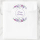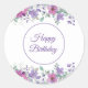Grand autocollant rond heureux d'anniversaire est montré avec une belle impression florale violet. Customiser ou acheter tel quel. Stock Imprimer freepik.com