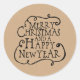 Les autocollants de Noël avec un look naturel, simple, dispose d'un look de papier kraft tan arrière - plan avec texte de typographie noire qui lit Joyeux Noël et une Bonne Année! Nous avons la même conception simpliste sur les cartes, les timbres-poste et les étiquettes d'adresse de retour automatique!