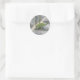 Cette belle feuille d'autocollants ronds présente une photo détaillée d'un grand cricket vert féminin assis sur la feuille d'un plante de brocoli. La photographie a été prise en utilisant la macro photographie pour montrer cet insecte fascinant et son environnement dans les moindres détails.