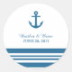 Stickers de mariage Ancre nautique élégant et classique avec une simple ancre de bateau et un ensemble de rayures en bleu marine foncé et blanc. Ces autocollants de mariage sur le thème de la plage nautique peuvent être facilement customisés avec vos détails de mariage. Pour plus d'options de personnalisation, cliquez sur le bouton Customiser.