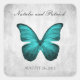 Élégant et simple autocollant Mariage avec un papillon turquoise contre un arrière - plan gris. Ce design est un choix unique pour un mariage moderne. Facile à customiser avec vos détails mariages. Cliquez sur "Customiser" pour trouver d'autres options de personnalisation.