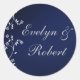 Arrière - plan bleu foncé avec feuilles argentés et nom de marié et marié en écriture gris doux. Idéal pour les sacs cadeaux, les scellés d'enveloppe, les décorations de douche et plus encore.