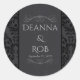 Stickers Mariage damassé noir & gris. Style gothique gris foncé avec ornements noirs damassés. Ce design fait partie de notre collection gothique Mariage damassé. Conçu par Metro-Events.com