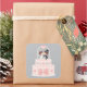 Autocollants décoratifs mariages personnalisés qui s'accompagnent d'une illustration d'un gâteau mariage avec ruban et coeur. Les dessus de gâteau comprennent une mariée en robe blanche et un marié en chapeau de dessus noir et un costume sous une voûte fleurie de cloches mariages. Personnalisez avec les noms du couple mariage et la date du mariage !