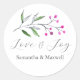 Ces autocollants de mariage d'hiver portent les mots "Merci" mis dans la typographie de script à la mode. Utilisez les champs modèle pour ajouter votre texte personnalisé. Une goutte d'eau de botanique de Noël orne le dessus. Pour voir assortir papeterie mariage rustique et d'autres idées de mariage hivernal visitez www.zazzle.com/dotellabelle stickers de Noël pour cartes aquarelle art et design de Victoria Grigaliunas