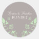 Stickers Mariage Floral aux Papillons doux et appétissants avec un arrière - plan gris poussiéreux muet et papillons vert menthe et ornements de vigne fleurie. Ces stickers de mariage élégants sont le choix idéal pour un mariage moderne et chic. Facile à customiser, ajoutez simplement les détails de votre mariage dans les champs de texte fournis. Cliquez sur le bouton "Customiser" pour trouver d'autres options de personnalisation.
