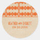 Stickers de mariage Art Déco élégant et raffiné avec une bordure motif orange sur un arrière - plan de texture en faux papier. Ces stickers de mariage élégants sont un choix idéal pour un mariage moderne. Facile à customiser, il suffit d'ajouter les détails de votre mariage dans les champs de texte fournis. Cliquez sur "Customiser" pour trouver d'autres options de personnalisation.