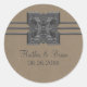 Stickers de mariage à la frontière de médaillon Regal et élégant, avec médaillon métallique art numérique et bordure à trois bandes sur un arrière - plan marron mocha. Ces autocollants de mariage audacieux et élégants sont parfaits pour un mariage tout aussi audacieux et élégant et sont parfaits pour les faveurs ou les enveloppes scellées. Facile à customiser, il suffit d'ajouter les détails de votre mariage dans les champs de texte fournis. Cliquez sur "Customisez-le" pour trouver d'autres options de personnalisation comme changer de police ou de taille de texte.