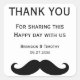Merci gay mariage stickers de faveur avec moustache noire et texte noir personnalisé imprimé sur arrière - plan blanc