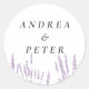 Élégant autocollant de mariage avec lavande. Personnalisez avec vos noms.