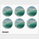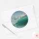 Mariage de plage merci autocollants. Arrière - plan des vagues turquoise de l'océan, avec le libellé "merci" dans la police de caractères moderne. Les autocollants ronds sont de deux tailles et peuvent être ajoutés au dos des enveloppes ou placés sur un emballage de faveur.