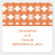 Stickers de mariage moderne et élégant en orange décoré d'un motif art déco élégant. Ces stickers de mariage chic sont faciles à customiser avec vos détails mariages. Cliquez sur "Customiser" pour trouver d'autres options de personnalisation.