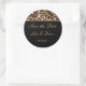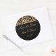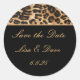 Cet autocollant rond mariage Save the Date est montré dans un empreinte de léopard noir et safari. Personnalisez cet autocollant avec vos noms et date avec ce modèle. La taille est grande.