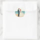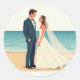Comprend 20 petits autocollants sur une feuille. Illustration adorable d'une mariée et d'un marié sur la plage, parfaite pour les décorations mariages.