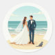 Comprend 20 petits autocollants sur une feuille. Des autocollants de mariage délicats avec une mariée et un marié sur une plage sereine, parfaits pour les célébrations mariages ou les jalons de l'anniversaire.