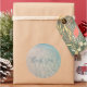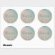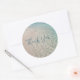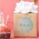 Mariage de plage merci autocollants. Eau à l'arrière - plan du rivage, avec le libellé "merci" dans la police de caractères de script moderne. Les autocollants ronds sont de deux tailles et peuvent être ajoutés au dos des enveloppes ou placés sur un emballage de faveur.