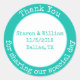 Monnaie vert et blanc de mariage préférence autocollants, avec texte personnalisé tournant autour du bord extérieur et au milieu. Personnalisez tous les champs de texte pour votre mariage.