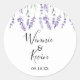 Violet, Sticker Mariage Lavande. Conçu avec des fleurs de lavande peintes à la main violet avec style aquarelle. Il s'agit d'un design de style champêtre pour les mariages du printemps, de l'été et de l'extérieur. Customisez ce dessin avec votre date de mariage et les noms de mariée et de mariée. La couleur arrière - plan est définie sur le blanc, mais vous pouvez choisir une couleur de remplissage de votre choix.