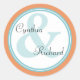 Cartes d'enveloppe de mariage monogrammed citrus orange spa marié et marié tropical autocollants. Design turquoise orange frais et bleu aqua. © 2010 Mariage Bells Tous droits réservés