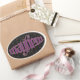 Le mot 'Mayhem' comme ambigramme sur un ovale orné. Les Ambigrammes sont des mots qui peuvent être retournés et encore lire la même chose.