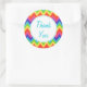 Un motif arc-en-ciel traditionnel décore ces autocollants en Merci. Utilisez ces autocollants festifs pour un business, une fête d'anniversaire, etc...Le design est de l'art original.