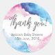 stickers Merci avec des détails customisés pour vos faveurs de fête, avec arrière - plan bleu et rose aquarelle. Des modèles correspondants sont également disponibles.