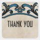 Stickers Merci gothique élégant et chic avec un vintage arrière - plan beige imitant texturé et des bordures fleuries tourbillonnantes en bleu royal. Ce design ancien est parfait pour un mariage gothique ou vintage. Facile à customiser, il suffit d'ajouter les détails de votre mariage dans les champs de texte fournis. Cliquez sur "Customiser" pour trouver d'autres options de personnalisation.