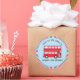 autocollants de Merci avec un bus à deux étages rouge inspiré des bus vintages de Londres. Parfait pour la fête d'anniversaire à Londres ou en bus. Bleu, rouge et blanc rayures pour la décoration de l'arrière - plan. Personnalisez avec votre message de fête.