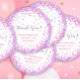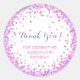 Stickers Merci fête d'anniversaire avec texte personnalisé et confettis colorés autour du bord. Les couleurs confetti sont roses, violettes, lilas et lavendar. Des autocollants parfaits pour le thème d'anniversaire de la fille!