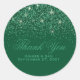 Glamour moderne Emerald Glitz Parties scintillant merci stickers. Beau, vert sophistiqué avec des accents de parties scintillant. Ce design mariage de parties scintillant fait partie de notre collection Mariage de Parties scintillant à Metro-Events sur Zazzle. D'autres fournitures de mariage de coordination sont disponibles. Pour des couleurs et des motifs personnalisés, veuillez contacter Metro-Event.com Veuillez consulter votre dessin dans les limites et/ou la vue de la grille avant de passer votre commande car aucun texte s'étendant au-delà des lignes de frontière rouge ne sera imprimé sur votre invitation. Si votre texte ne correspond pas aux lignes limites, essayez de réduire le texte et/ou la taille de l'invitation afin que tout le texte s'insère dans vos lignes limites.