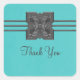 Stickers de Merci frontalier de Medallion Regal et élégant avec un médaillon métallique art numérique et une bordure à trois bandes sur un arrière - plan turquoise. Ces autocollants de remerciement audacieux et élégants sont parfaits pour un mariage tout aussi audacieux et élégant et sont parfaits pour les faveurs ou les enveloppes scellées. Facile à customiser, il suffit d'ajouter les détails de votre mariage dans les champs de texte fournis. Cliquez sur "Customisez-le" pour trouver d'autres options de personnalisation comme changer de police ou de taille de texte.