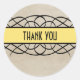 Stickers Merci Flourish élégant et élégant, avec un look vintage arrière - plan et une bordure en rayures jaune tourbillon et citron. Ce design élégant est le choix idéal pour un mariage d'inspiration vintage et chic. Facile à customiser, ajoutez simplement le texte personnalisé de votre choix dans le champ de texte fourni. Cliquez sur "Customiser" pour trouver d'autres options de personnalisation.