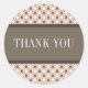 Stickers Merci en treillis tendance et chic avec un cercle élégant et un motif en diamant clouté sur un arrière - plan pêche dynamique avec une large bordure brune bicolore. Ces stickers de remerciement élégants sont parfaits pour un mariage moderne. Facile à customiser, ajoutez simplement le texte personnalisé de votre choix. Cliquez sur "Customiser" pour trouver d'autres options de personnalisation.