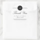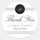 Customisez ce chic chic élégant monogramme noir et blanc Merci Mariage rond Favors Stickers. Design moderne propre et soigné avec un texte noir et design sur un arrière - plan blanc.