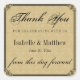 Gold Damask arrière - plan et police formelle créer un beau mariage merci autocollant. Utilisez-le sur vos faveurs de mariage, boîtes à gâteaux mariages. Tout le texte est facilement édité. Parfait pour un mariage de Downtown Abbey, mariage de Gatsby, mariage des années 1920.