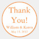 Ajoutez la touche finale à vos cadeaux de remerciement ou faveurs de mariage avec ces autocollants de remerciement personnalisés ronds. Vous pouvez également utiliser ces autocollants personnalisés comme scellés d'enveloppe pour vos cartes de remerciements. Ces autocollants personnalisables comportent du texte orange moyen sur un arrière - plan blanc avec une bordure orange. Assurez-vous de consulter les enveloppes de coordination, les cartes, les produits fixes et autres produits Medium Orange dans notre magasin.