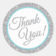 Sticker en Merci de Parties scintillant argenté. Cette conception correspond également aux Invitations de Bachelorette Party sur le site Web Metro-Events : Metro-Event.com