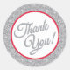Sticker en Merci de Parties scintillant argenté. Cette conception correspond également aux Invitations de Bachelorette Party sur le site Web Metro-Events : Metro-Event.com