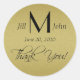 Élégant Sticker en Merci Mariage noir et blanc dans une belle police de script. Parfait pour vos faveurs de mariage labellisées. Conception par Elke Clarke ©. Disponible à l'adresse www.zazzle.com/epclarke. Customisez avec vos noms de mariée et de mariée, nom de famille, date initiale et mariage.