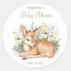 Stickers vous remercie pour le baby shower avec adorable aquarelle fawn niché au milieu des fleurs.