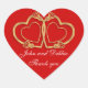 stickers Merci pour les faveurs de mariage. Coeur rouge vif aux coeurs dorés. Personnalisez avec vos noms et changez la couleur arrière - plan pour convenir à votre goût.