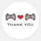 Le chic original et totalement geek est ce chic Mariage Stickers de Merci de mignon Gamer avec une paire de contrôleurs de jeu vidéo avec des boutons rouges. Un coeur au milieu connecte les deux contrôleurs. Ces autocollants de remerciement nerveux sont parfaits pour le couple de jeu. Facile à customiser, il suffit d'ajouter les détails de votre mariage. Cliquez sur "Customiser" pour trouver d'autres options de personnalisation.