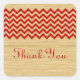 Stickers Merci Rustique moderne et tendance avec un arrière - plan imprimé en bois d'art numérique et un motif zig en zag de rayures de chevrons rouge foncé. Ce design est parfait pour un mariage rustique mais élégant. Facile à customiser, ajoutez simplement le texte personnalisé de votre choix. Cliquez sur "Customiser" pour trouver d'autres options de personnalisation.