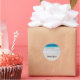 Eau tropicale bleue de l'océan et image de plage lisse et sablonneuse sur un autocollant rond avec le texte personnalisé qui est "merci".