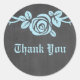 Stickers de Merci Chalkboard doux et joli Rose en bleu clair avec un seul et joli rose sur une vigne sur un tableau noir look arrière - plan. Cet élégant design est parfait pour un mariage de printemps ou d'été. Facile à customiser, ajoutez simplement le texte personnalisé de votre choix dans les champs de texte fournis. Cliquez sur "Customiser" pour trouver d'autres options de personnalisation.