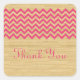 Stickers Merci Rustique moderne et tendance avec un arrière - plan imprimé en bois d'art numérique et un motif zig zag de rayures de chevrons magenta. Ce design est parfait pour un mariage rustique mais élégant. Facile à customiser, ajoutez simplement le texte personnalisé de votre choix. Cliquez sur "Customiser" pour trouver d'autres options de personnalisation.
