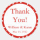 Ajoutez la touche finale à vos faveurs et cadeaux ou enveloppes de cartes de remerciements avec ces autocollants ronds personnalisés. Ces autocollants personnalisés sont munis d'un texte rouge cerise sur un arrière - plan blanc avec une bordure pointillée rouge et blanche. Le texte par défaut est "Merci !", mais vous pouvez facilement customiser le texte pour n'importe quelle occasion à partir de la page de commande de produit. Ces enveloppes personnalisées ou étiquettes cadeaux coordonnent avec les enveloppes True Red, les invitations et autres produits dans notre magasin.