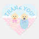 Merci Twins Boy and Girl Blue and Pink Stickers mignon pour les invitations à la douche bébé, annonces de naissance ou des notes de remerciement.