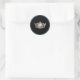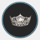 Autocollant rond montré avec arrière - plan noir avec une image de couronne argentée. A un éclat de couleur avec une bordure bleu ciel. Modifiez la couleur de la bordure si vous le souhaitez. L'option Filtre donne des choix de couleurs limités. Customiser ou acheter tel quel.